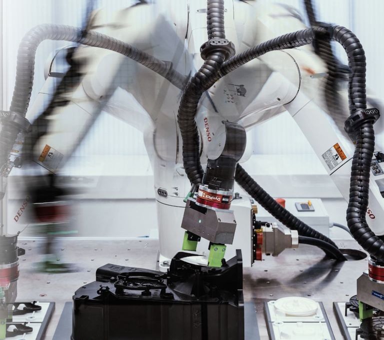 Der simulierte Roboter in drag&bot kann mit einem beliebigen Roboterarm (verschiedene Hersteller und Größen verfügbar) genutzt werden. Damit können Anwender den zu automatisierenden Prozess schnell und unkompliziert simulieren, ohne physische Hardware zu benötigen. Das Ergebnis kann als Entscheidungsgrundlage für die Automatisierung in puncto technische Machbarkeit (z. B. Erreichbarkeiten und grobe Taktzeitabschätzungen) dienen.